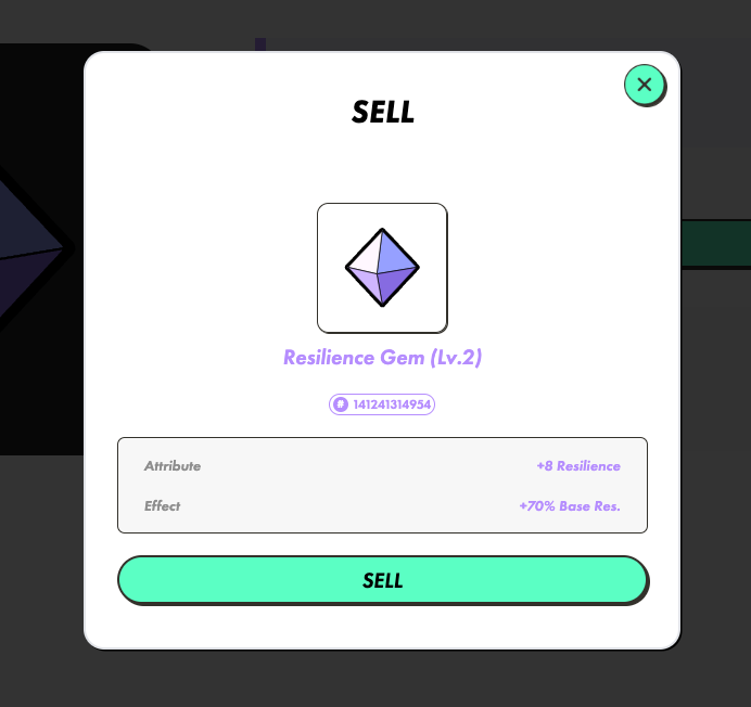 3. Inventory 화면에서 팔려고 하는 lv 의 보석 선택 -> 팝업이 뜸 -> Sell button 클릭 -> Sell all Resilience Gem (Lv. x) 체크 후, SELL 클릭 !