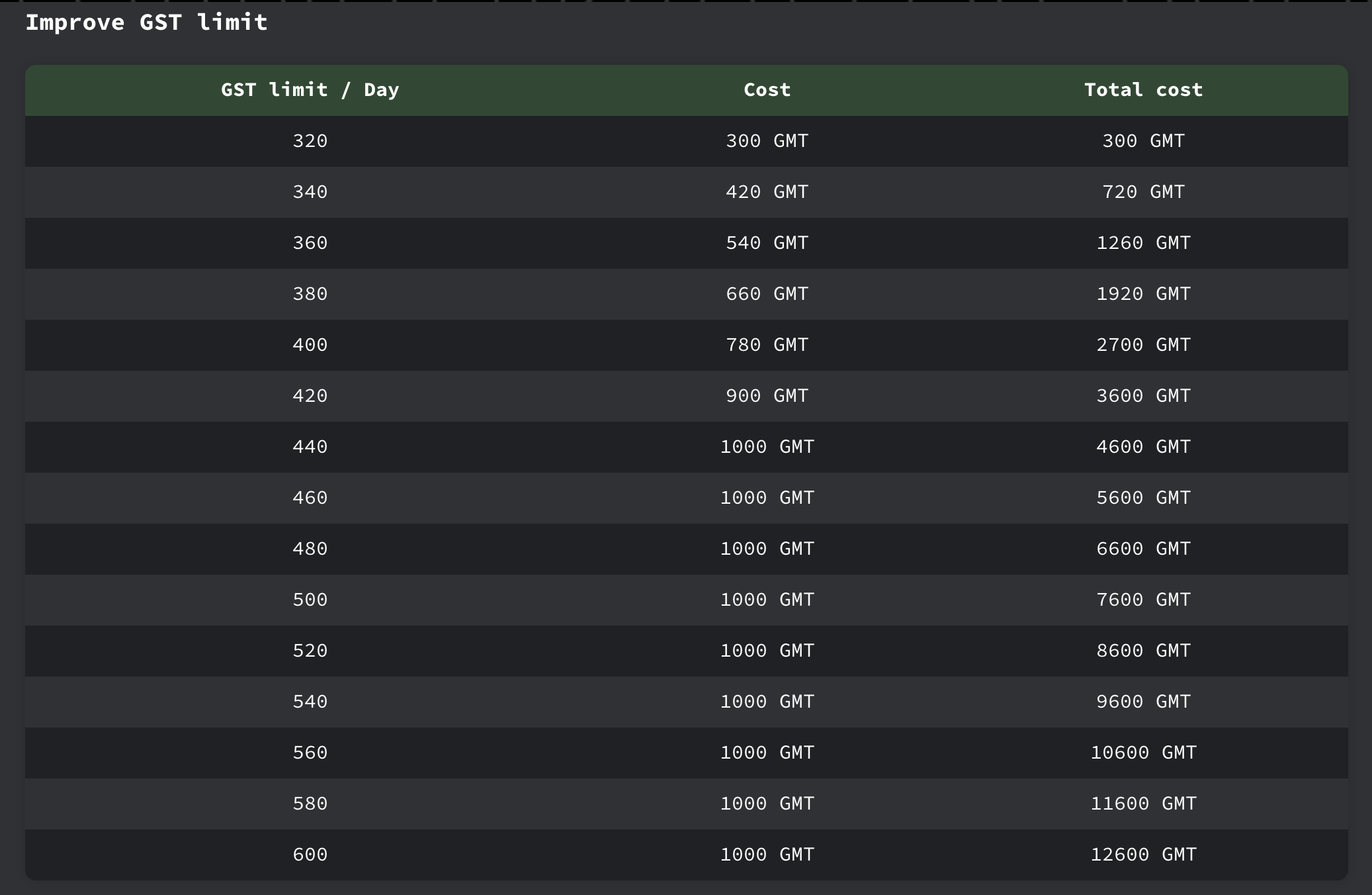 오호라, 그렇다면 현재 채굴 가능한 300GST 에서 600GST 까지 채굴 가능하게 하려면 몇 GMT 가 필요한지 보자.